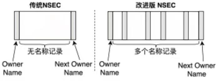 图4简要展示了改进版的NSEC的结构简图,核心改进在于使用一个NSEC记录携带更多信息。
